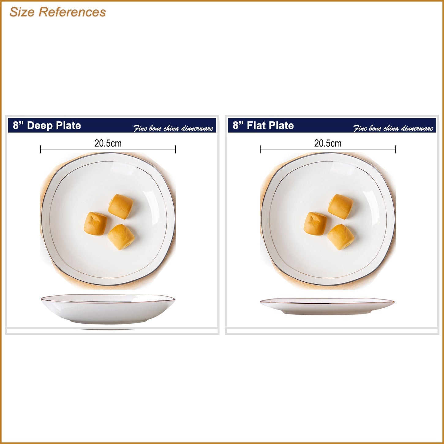 Bone China Plate with Silver Rim - Square with Curved Edge
