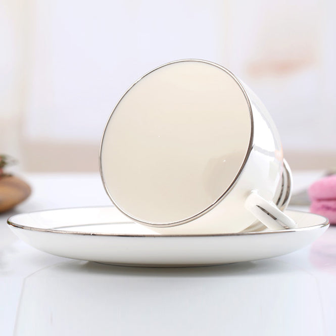 Bone China Tea Cup & Saucer - W/ Gold Rim or Silver Rim