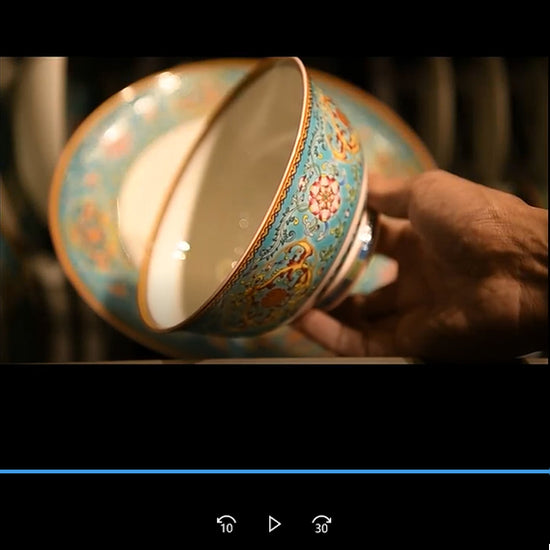 Luxury Bone China Dining Ware Collection - Enameling of Decorative Motif in Turquoise