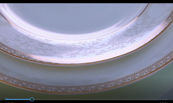 Bone China Dinnerware Set - Decorative Rim in Gold & Brown with Pale Pattern