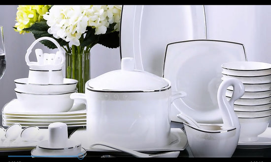 Bone China Dinnerware Set - Handcrafted Silver Inlay with Pattern in Relief