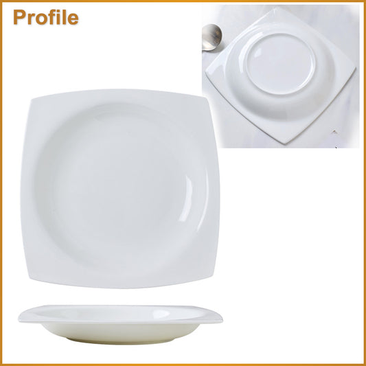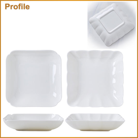 Bone China Square Plate in Creamy White - Scallop or Ribbed Edge